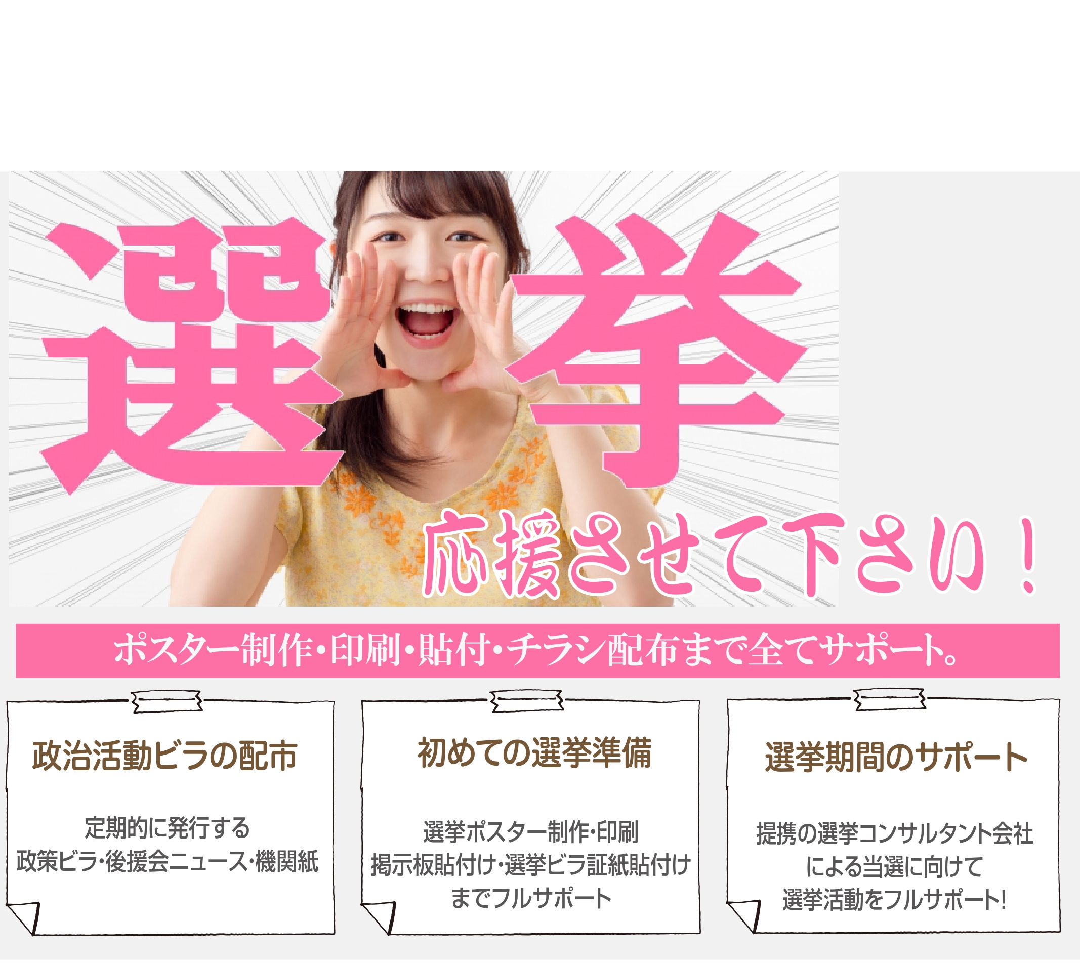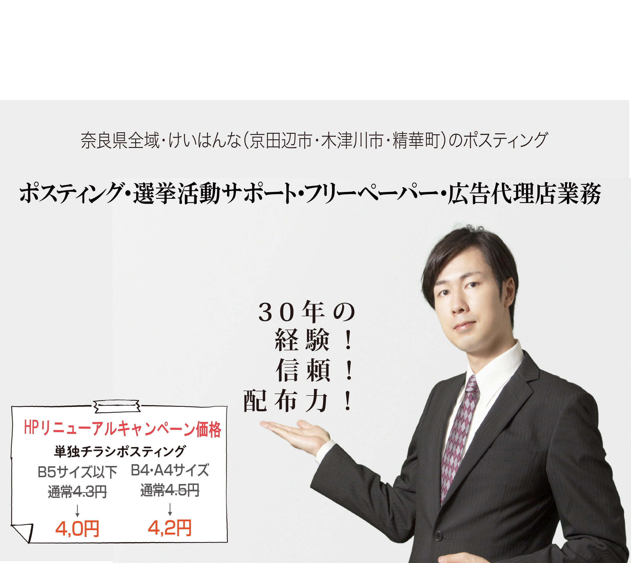 地域特性を熟知したベテランの弊社担当者が、お客様のエリア特性・ターゲット層・反響傾向を踏まえた、成果重視のアドバイス・自らのポスティング経験に基づき、コストパフォーマンスと高い反響が期待できるプランをご提案できるのが強みです。