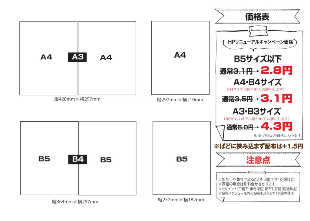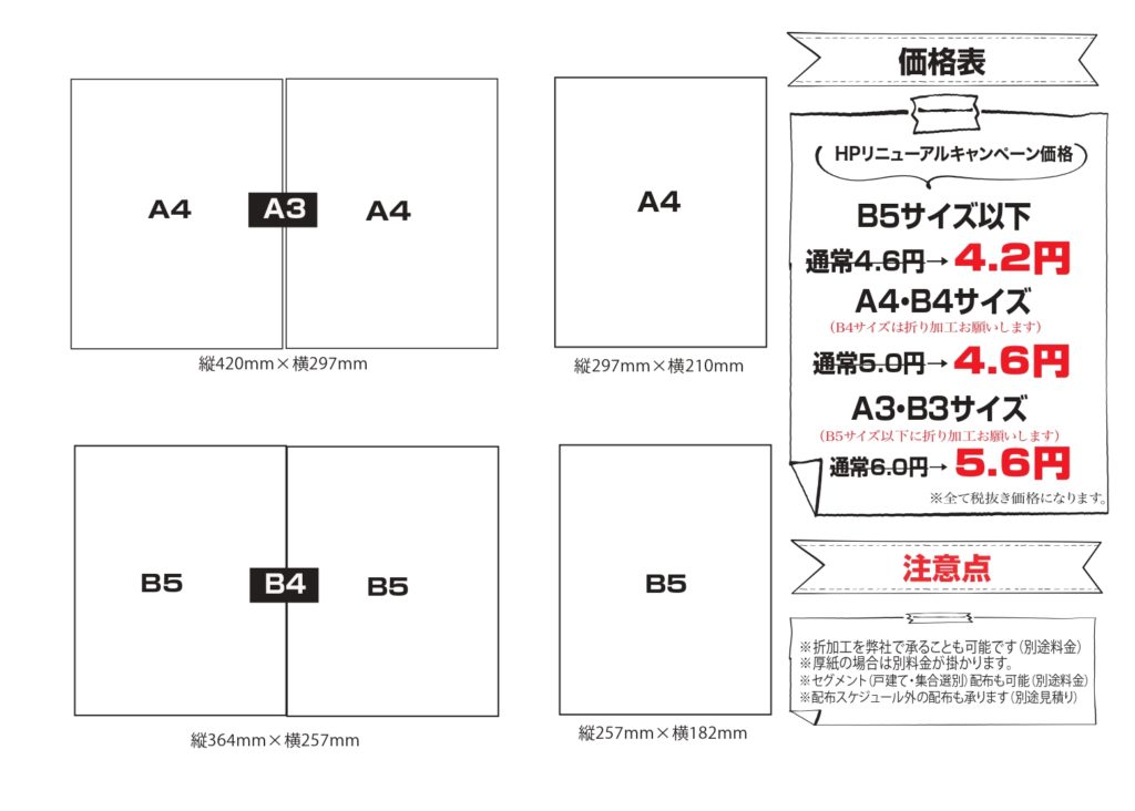 単独ポスティング価格表(奈良県下・京都府南部地区)